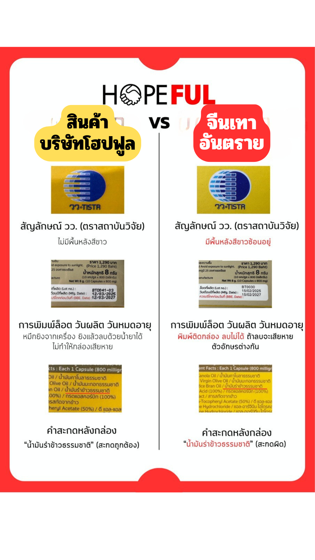 บริษัท โฮปฟูล จำกัด ขอเรียนแจ้งให้ลูกค้าและผู้บริโภคทุกท่านทราบว่า บริษัทได้ทำการตรวจสอบแล้ว พบว่ามีร้านค้าบางรายจำหน่ายสินค้าปลอมซึ่งมีรายการดังนี้